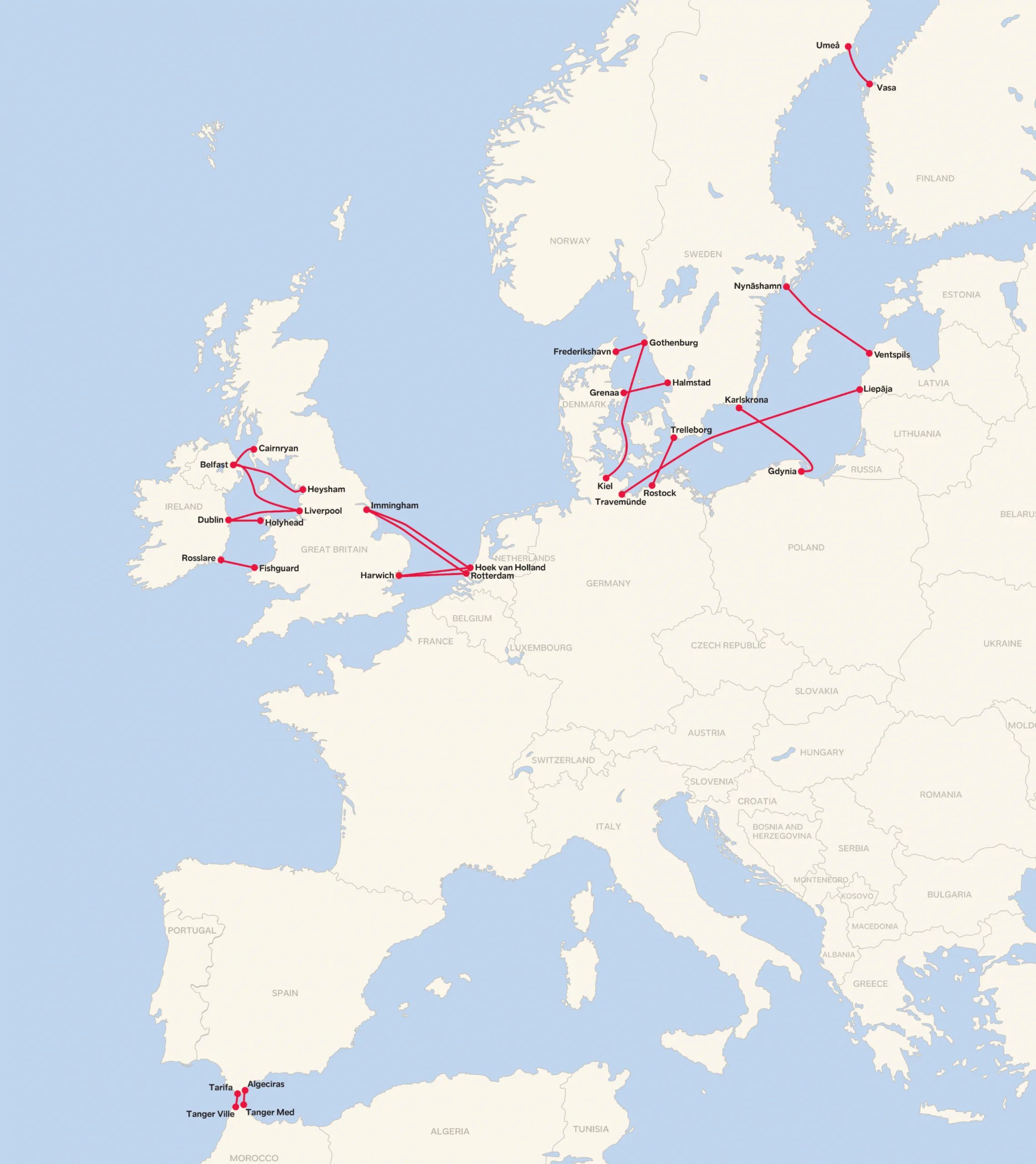 The Stena Line Freight route network is one of Europe's largest, linking key ports and road connections across Northern Europe. Learn more here.